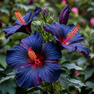 Гибискус «Саншайн Кисс» — настоящая находка для ценителей редких и необычных растений. Его тёмные, синие цветки, словно бархат, поглощают свет и притягивают взгляды своей загадочной красотой. Представьте, как этот прекрасный гибискус будет выделяться на фоне зелёной листвы, создавая атмосферу таинственности и утончённости! Он словно пришелец из другого мира, но при этом прекрасно приживется в вашем саду.